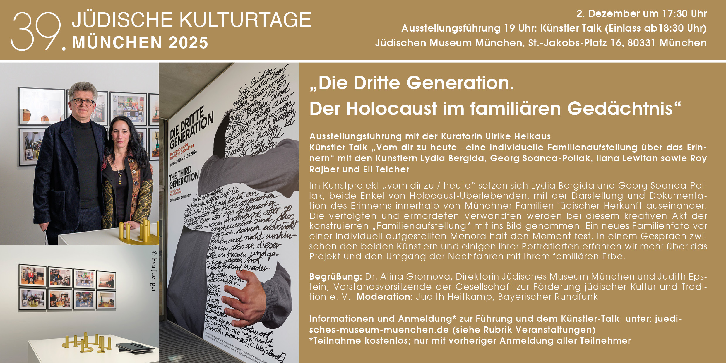 Informationen und Anmeldung* zur Führung und dem Künstler-Talk unter: juedisches-museum-muenchen.de (siehe Rubrik Veranstaltungen)