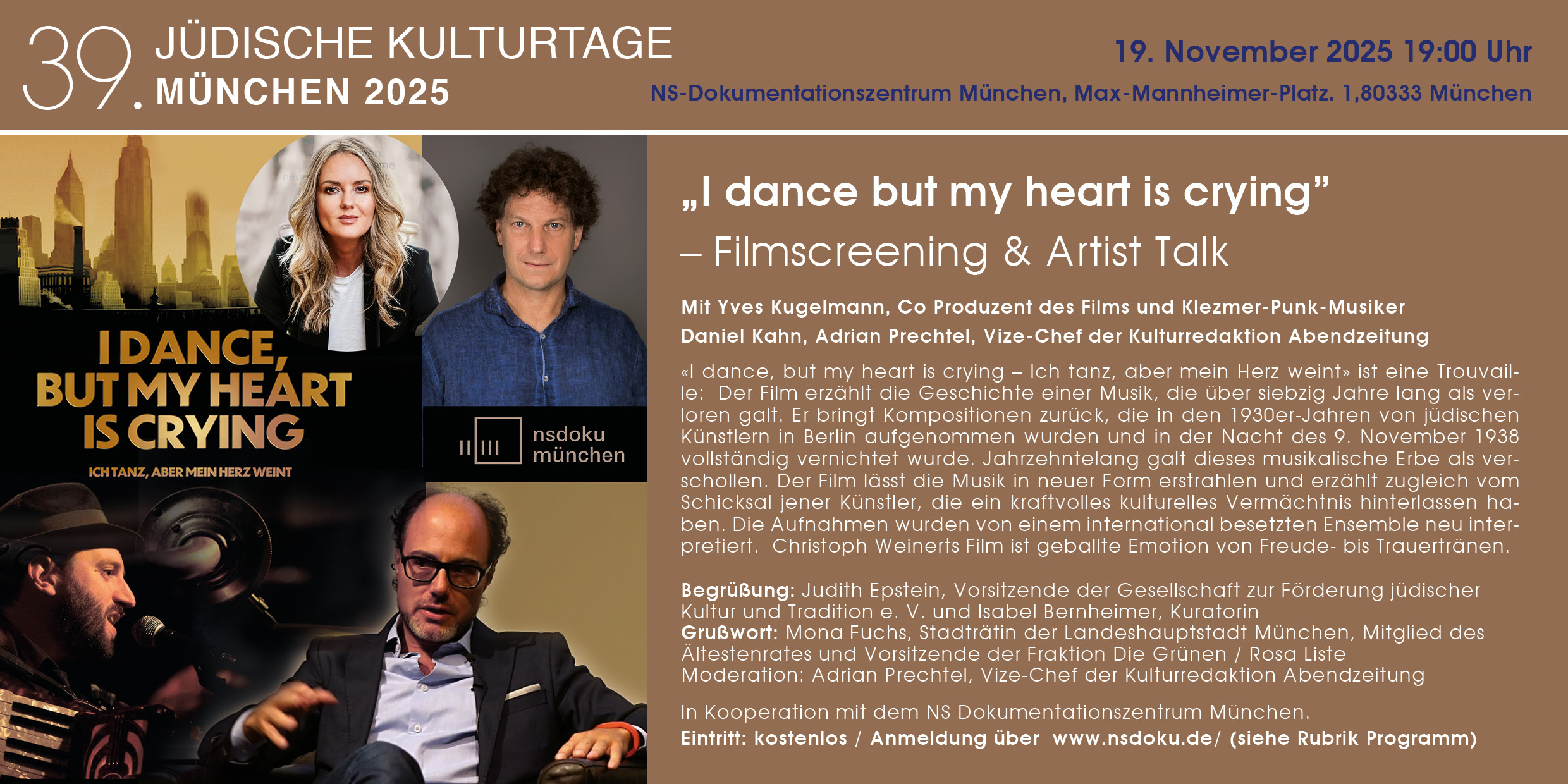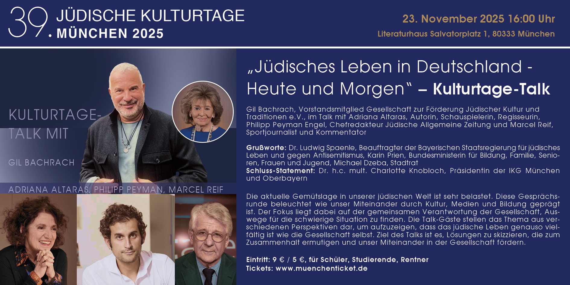 Tickets: https://www.muenchenticket.de/event/39-juedische-kulturtage-muenchen-35440/440527/